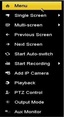 1) While watching the live view for your cameras, right click and select Menu.
