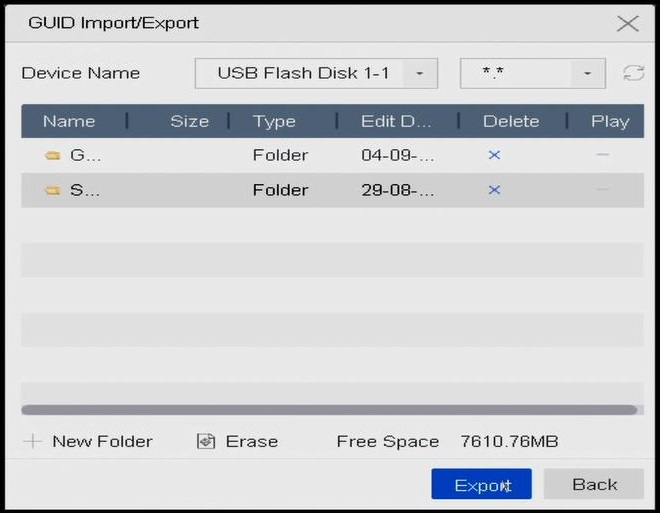 On the next screen make sure that USB Flash Disk is selected and press Export followed by Back. This will save the GUID file to your USB Memory Stick so please keep it in a safe place.