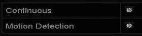 10) The final step on the wizard allows you to set some basic recording settings. If you would like your cameras to be recording all the time click the cog icon next to Continuous, if you would like them to only record when something moves in front of them you can press the cog icon next to Motion Detection.